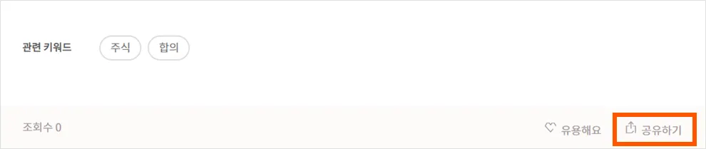 1. 작성한 콘텐츠 하단 공유하기 버튼 클릭