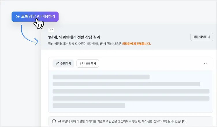 [로톡 상담지원 AI 이용 유의사항]