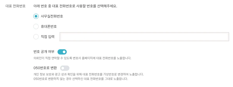 050 가상번호는 로톡에서 변호사 회원님께 부여하는 고유 전화번호입니다. 의뢰인이 050 가상번호를 통해 변호사님께 전화하면, 변호사님은 처음에 "로톡에서 온 전화입니다." 라는 음성 메시지로 로톡에서 걸려온 전화임을 인지하실 수 있습니다. 050 전화상담수 통계는 좌측 메뉴 중 '대시보드'에서 확인하실 수 있습니다. 로톡에서 부여하는 050 번호와 변호사님 사무실 전화번호 중 선택하여 의뢰인에게 노출할 수 있습니다. 050 번호로 노출을 원하지 않을 경우 [번호 원본으로 공개하기]를 선택하시면 사무실 전화번호 원본으로 의뢰인에게 노출됩니다.