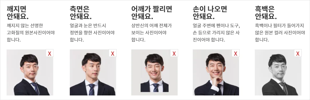 촬영한지 1년 이내의 현재모습과 동일한 고화질의 원본파일이어야 합니다.