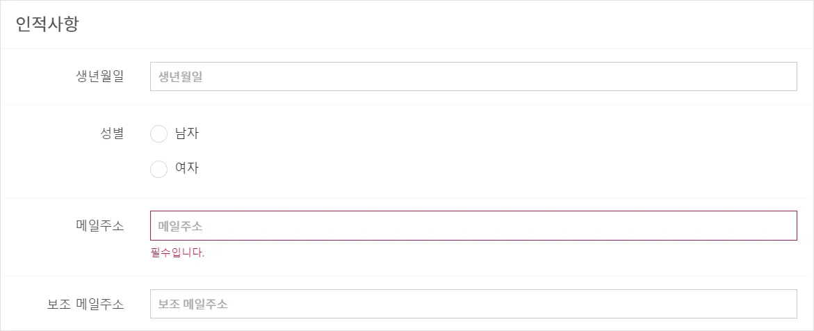 특수문자는 일부(< >{ }( ) , . / : ; !~-+ )만 허용됩니다.