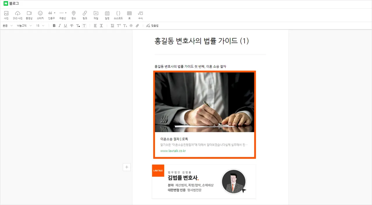 ● 글에 변호사님의 정보가 기본으로 포함됩니다.