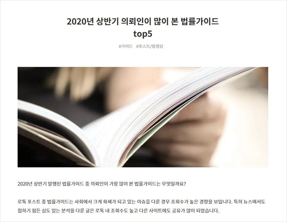정기적으로 올리는 해결사례, 법률 가이드 콘텐츠는 변호사님의 경험이 풍부하다는 인상을 줄 수 있습니다. 개인 블로그나 홈페이지에도 콘텐츠를 함께 업로드 해보세요.